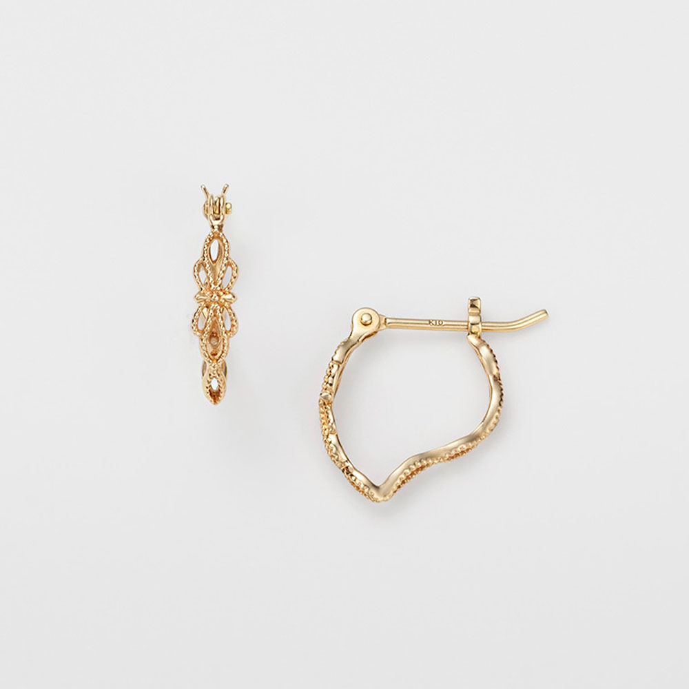 让人联想到树枝的图案被雕刻成椭圆的形状(网状),在厚度和宽度上都呈现出有间隔的韵律。这种不均匀性使其呈现了一种银色的光影交叉,让手部线条更加精致。