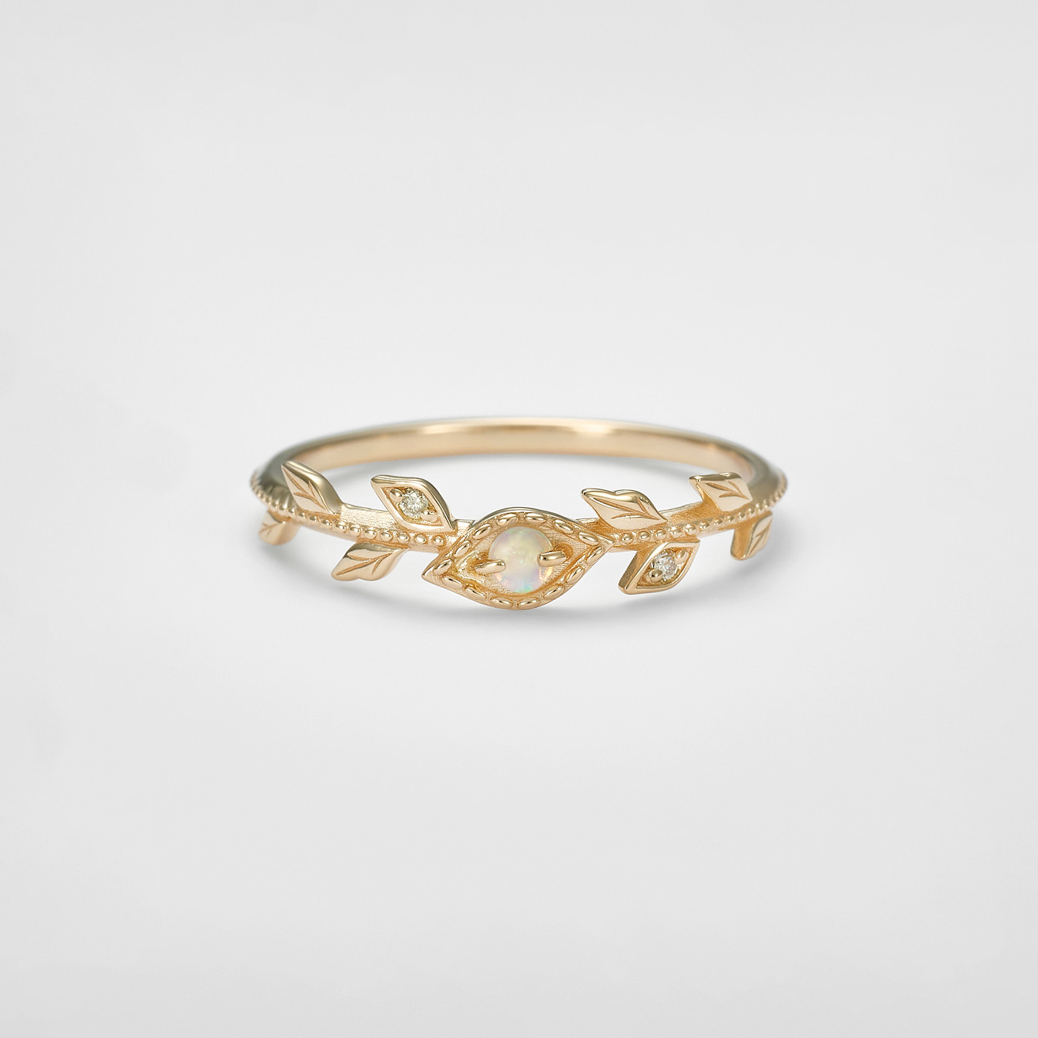 水滴形蛋白石戒指,色彩柔和且梦幻。