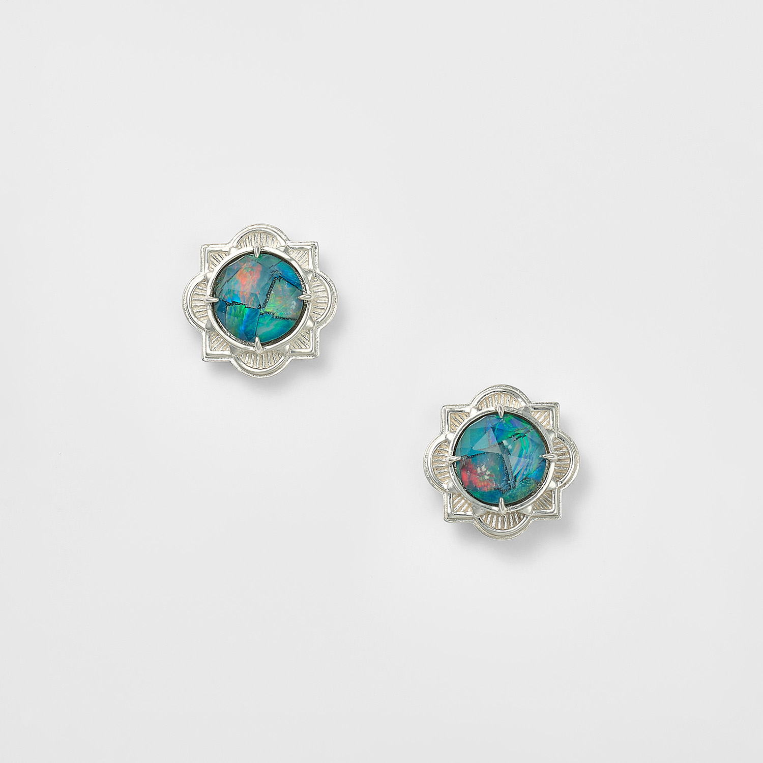 宛如将梦境景色凝固在方形马赛克蛋白石中,细碎的蛋白石光影交织,营造出迷人的闪耀效果。